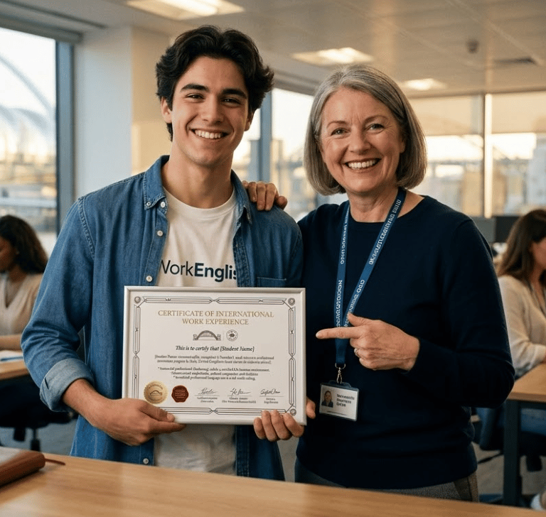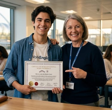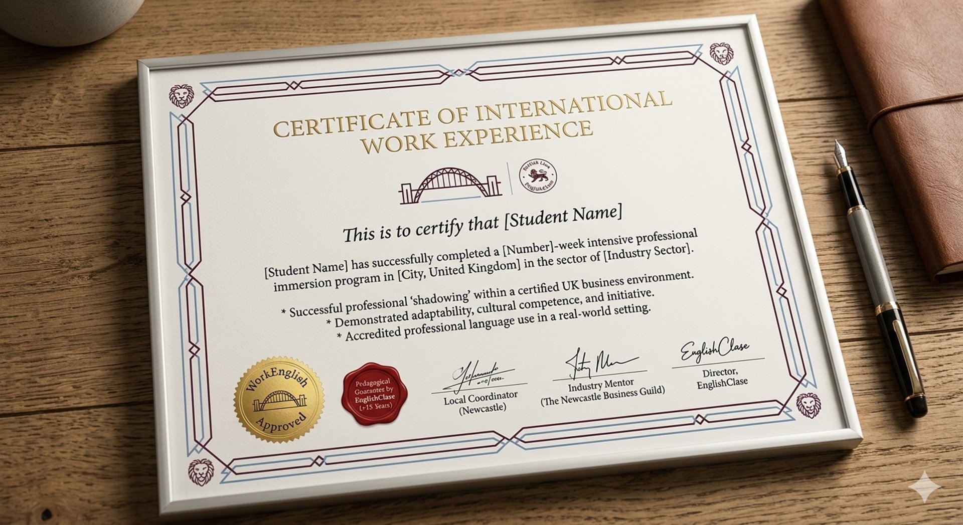 At the end of the program, each student receives an Official International Work Immersion Certificate, backed by EnglishClase's pedagogical experience (over 15 years) and the WorkEnglish quality seal.